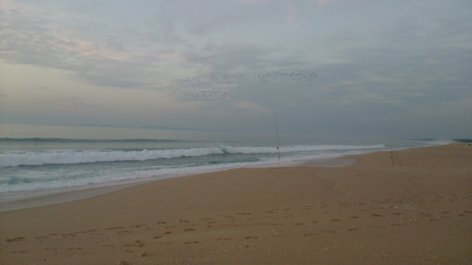 As horas passavam e o desespero aumentava. Para quem tinha esperança em uma grande pescaria, a coisa estava longe disso... 4 pescadores, 4 grades, em 3 horas de pesca. E o estranho é que apesar da onda lá atrás ser grande e bater de forma a que areava um pouco as chumbadas, no geral estava pescável e o mar bonito, certinho...